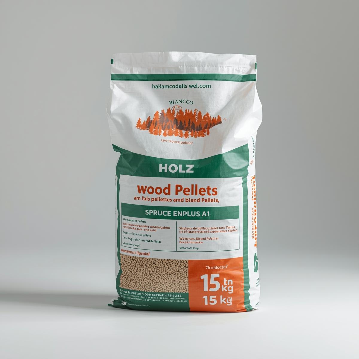 Prémiové drevené pelety BIANCO HOLZ ENplus A1 zo 100 % čistého svetlého smrekového dreva.Vysoká výhrevnosť, minimálny popol (<0,7 %) a ekologické horenie.Paleta obsahuje 75 vriec × 15 kg (spolu 1 125 kg). Ideálne pre všetky typy kotlov a pecí na pelety.